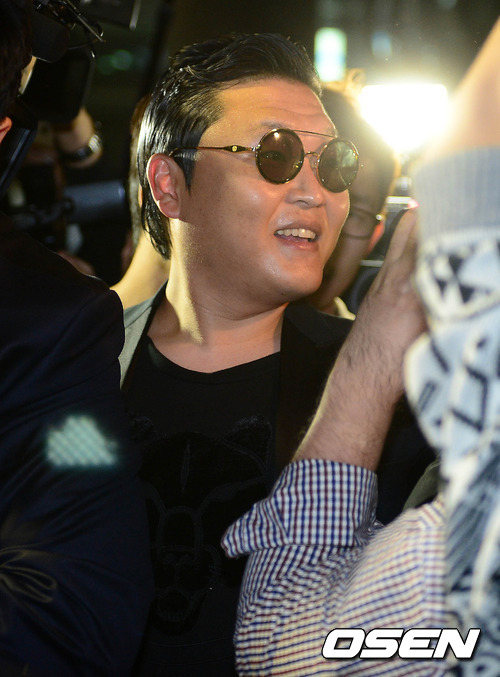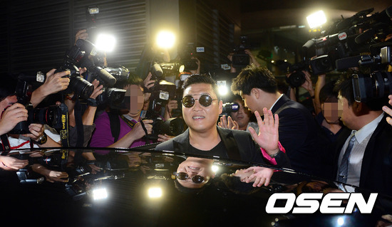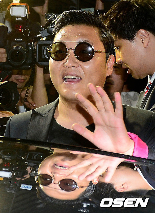 오늘따라 돋보이는 싸이의 트레이드마크 동그란 선글라스! '기자회견에서 뵈요~'