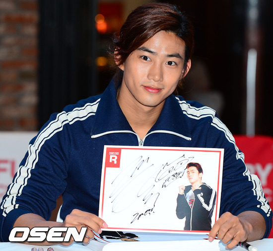 27일 오후 6시 서울 여의도 IFC 몰에서 열린 리복의 모델인 수지, 우영, 택연의 팬 사인회에서 택연이 자신의 사인을 들어보이고 있다.