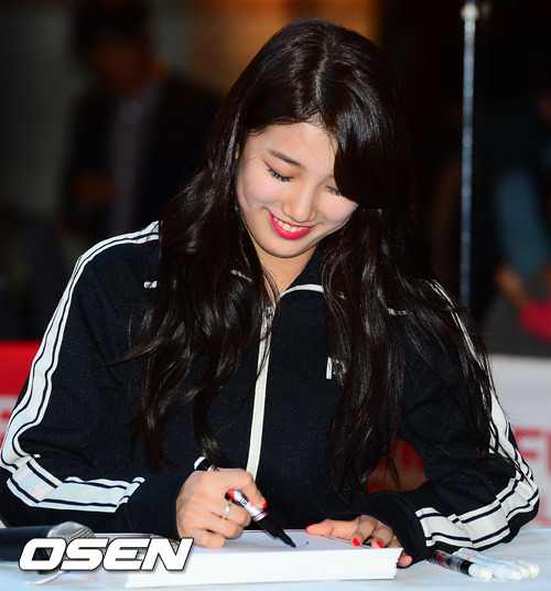 27일 오후 6시 서울 여의도 IFC 몰에서 열린 리복의 모델인 수지, 우영, 택연의 팬 사인회에서 수지가 사인을 하고 있다.