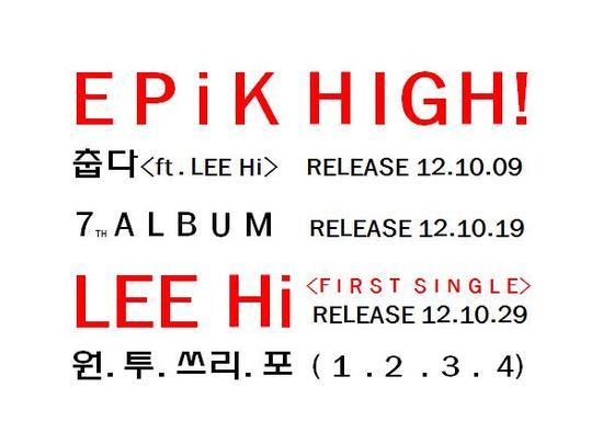 이어 10월 19일에는 에픽하이 세 멤버가 뭉쳐 지난 2009년 6집 ‘e’ 이후 3년 만에 새 앨범을 발표한다.