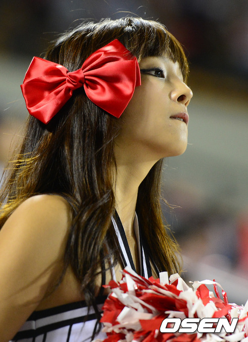 28일 오후 서울 잠실구장에서 열린 '2012 팔도 프로야구' LG 트윈스와 넥센 히어로즈의 경기, LG 치어리더 강윤이가 경기를 지켜보고 있다.