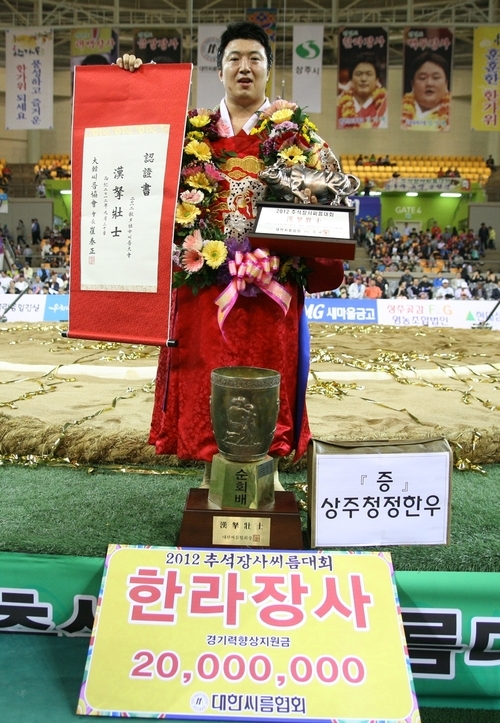 2004년 천안장사씨름대회, 2009년 5월 문경단오장사씨름대회에 이어 이번 대회까지 생애 3번째 장사 등극이다.
