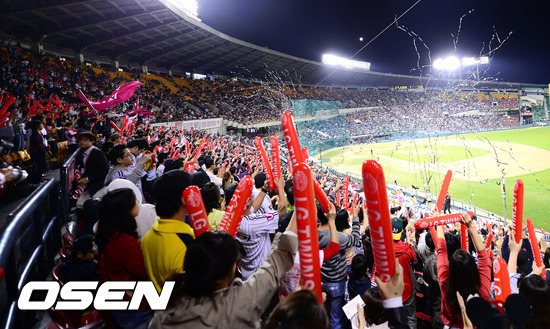 30일 오후 서울 잠실구장에서 열린 '2012 팔도 프로야구' LG 트윈스와 두산 베어스의 경기, 많은 야구팬들이 야구장을 찾아 관전하고 있다.