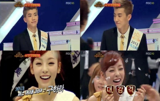 아이돌그룹 2PM의 우영과 걸그룹 카라의 구하라가 MBC 예능프로그램 '미스&미스터 아이돌 코리아 선발대회(이하 '아이돌코리아')'에서 진(眞)을 차지했다.