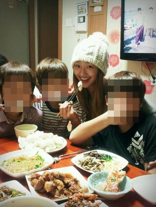 사진 속에 효린은 어린 아이들과 함께 즐겁게 송편을 먹고 있다. 세 명의 아이들과 다정하게 송편을 먹는 모습이 그간 무대 위에서 선보인 섹시한 모습과는 달라 눈길을 사로잡는다.