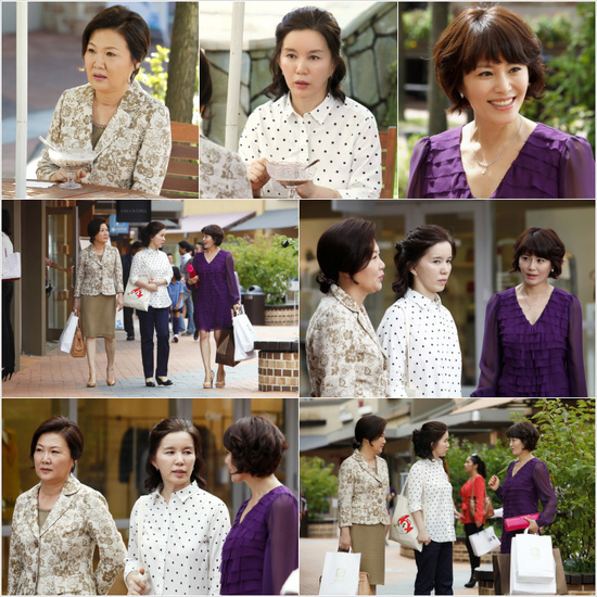 무엇보다 김해숙, 임예진, 견미리가 사이좋게 외출에 나선 모습이 포착, 이목을 집중시키고 있다. 쇼핑을 나선 세 사람이 각각 캐릭터만의 색채를 의상, 소품, 표정 등을 통해 선보였다. 극 중 안희재(유동근 분)의 부인 이지애 역을 맡은 김해숙은 과하지 않은 고급스러운 정장 패션과 진중한 표정을 통해 맏며느리다운 단아함을 물씬 풍겨냈다.