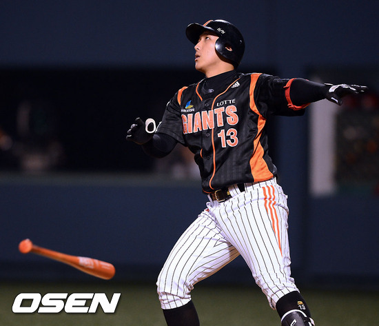 롯데 자이언츠 내야수 황재균이 만루 아치를 쏘아 올렸다. 황재균은 2일 군산구장에서 열린 KIA와의 경기에서 5-2로 앞선 7회 좌월 만루포를 터트렸다.