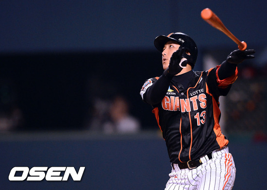 2일 오후 전북 군산구장에서 열린 2012 팔도 프로야구 KIA 타이거즈와 롯데 자이언츠의 경기 7회초 1사 만루 롯데 황재균이 만루홈런을 날리고 있다