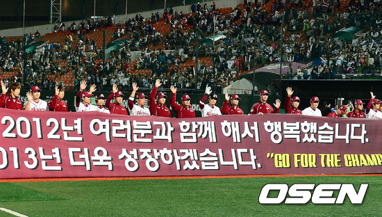 경기를 마치고 시즌 마지막 홈 경기를 치른 넥센 선수들과 코칭스탭들이 팬들에게 인사를 하고 있다. / rumi@osen.co.kr