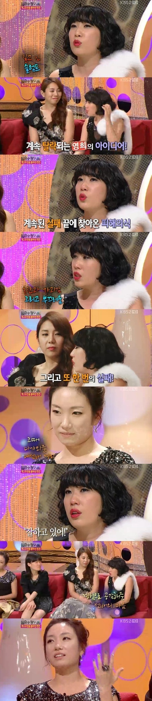 이에 정경미는 “김영희는 개그에 대한 욕심이 엄청 크다. 후배들에게 ‘영희만큼만 해라’라고 한다”면서 “한 주 한 주 (코너를 검사받지만 퇴짜 맞는) 그 마음을 안다”면서 김영희를 다독였다.
