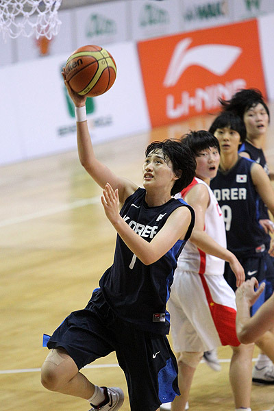 중국의 높이에 밀려 주도권을 내준 한국은 2쿼터서 구슬이가 3점슛 2방을 터뜨리며 일진일퇴의 공방전을 벌였다. 이후 한국은 유승희(174cm, G)와 강이슬, 김민정의 골밑 돌파가 살아나며 36-33으로 앞선 채 전반을 마감했다.