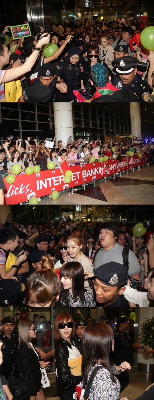 티아라는 지난 2일 말레이시아에서 열리는 대규모 쇼케이스에 참석하기 위해 출국했다. 밤 늦은 시간 현지 공항에 도착한 티아라 멤버들은 2500여 명의 팬들이 모여들면서 약 30분 가량 공항에서 빠져나오지 못하는 해프닝을 겪었다.
