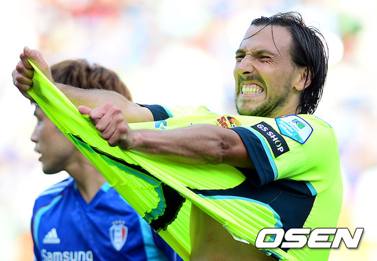경기 후반 서울 데얀이 동점골에 실패하자 아쉬운듯 유니폼을 잡아당기고 있다. / youngrae@osen.co.kr