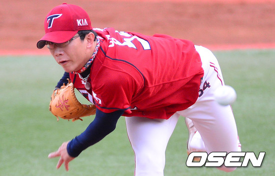 3일 오후 대전 한밭야구장에서 열린 '2012 팔도 프로야구' 한화 이글스와 KIA 타이거즈의 경기, 1회말 KIA 선발투수 양현종이 힘차게 공을 던지고 있다.