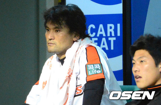 3일 오후 대전 한밭야구장에서 열린 '2012 팔도 프로야구' 한화 이글스와 KIA 타이거즈의 경기, 6회초 2사 마운드를 내려온 한화 박찬호가 그라운드를 바라보고 있다.