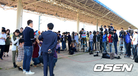 박태환이 취재진과 인터뷰를 갖고 있다.