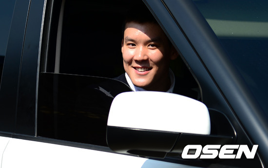 박태환이 이동차량의 창문을 열고 취재진을 향해 인사를 하고 있다.