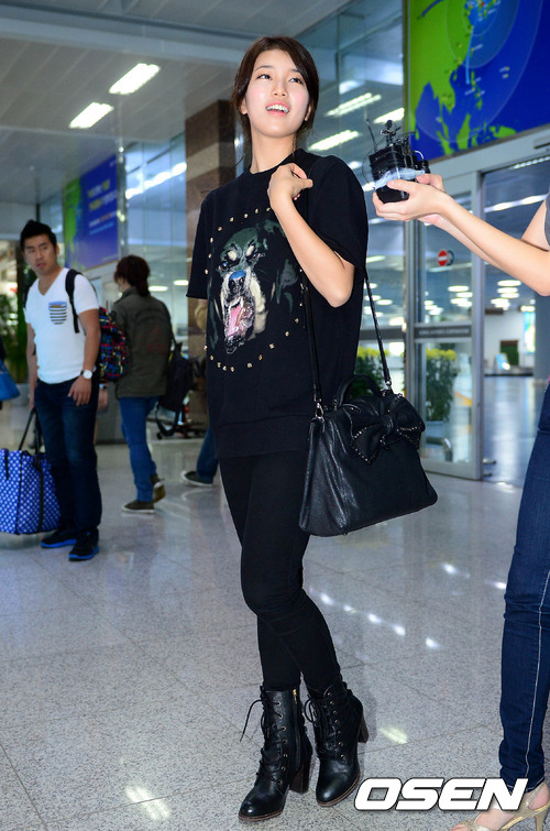 4일 오후 제17회 부산국제영화제(BIFF) 참석을 위해 김해공항에 도착한 수지가 취재진들과 인터뷰를 하고 있다.