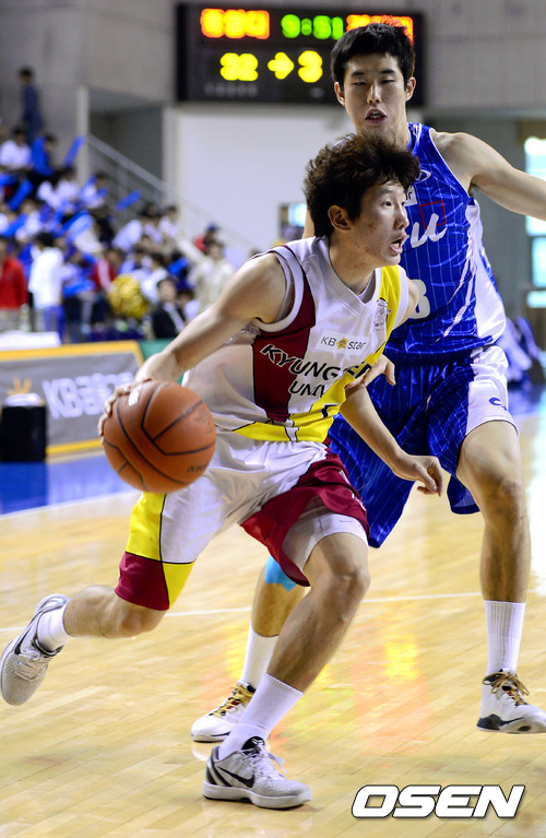 4일 오후 경기도 용인 실내체육관에서 열린 '2012 KB 국민은행 대학농구리그' 챔피언 결정전 2차전 경희대와 중앙대의 경기 3쿼터, 경희대 두경민이 골밑 돌파를 시도하고 있다.