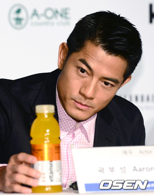 4일 오후 부산 영화의전당 중극장에서 열린 '제17회 부산국제영화제 개막작 기자시사 및 기자회견에서 곽부성이 음료를 바라보고 있다.