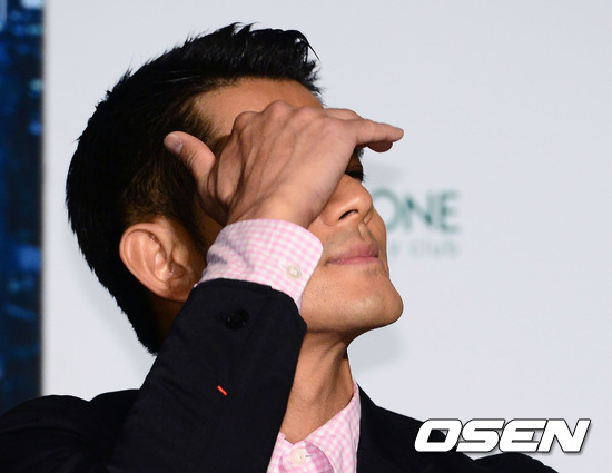 4일 오후 부산 영화의전당 중극장에서 열린 '제17회 부산국제영화제 개막작 기자시사 및 기자회견에서 밝은조명에 눈부신 곽부성이 손으로 눈을 가리고 있다.