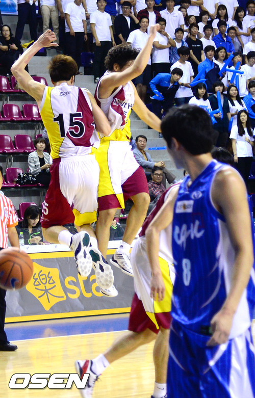 경기 종료 후 우승을 차지한 경희대 김영현과 김종규가 기뻐하고 있다. / youngrae@osen.co.kr