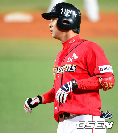 4일 오후 대구야구장에서 열린 '2012 팔도 프로야구' 삼성 라이온즈와 SK 와이번스의 경기, 8회초 2사 2루 SK 최윤석이 좌전 적시타를 치고 타임을 외치고 있다.