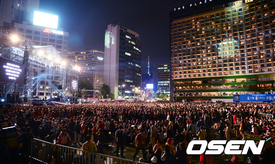 '강남스타일'로 세계적인 인기를 누리고 있는 싸이의 무료공연이 4일 오후 10시 시청 앞 광장에서 열리는 가운데 시민들이 공연을 기다리고 있다.