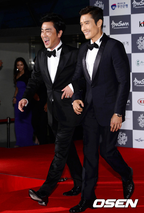 4일 오후 부산 영화의 전당에서 열리는 제17회 부산국제영화제(BIFF) 개막식 행사에서 류승룡 이병헌이 레드카펫을 밟고 있다.