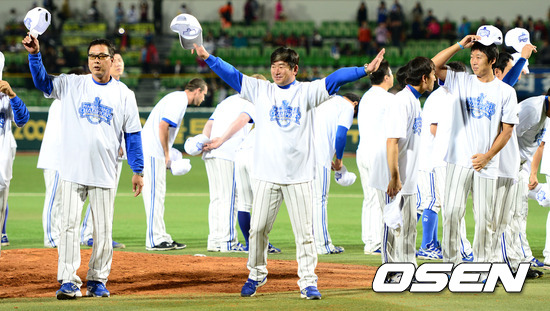 경기 종료 후 류중일 감독을 비롯한 삼성 선수들이 인사를 하고 있다. / sunday@osen.co.kr