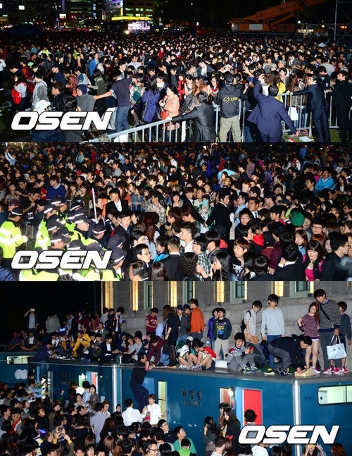 싸이의 공연을 보기 위해 모여든 인파는 무대를 조금이라도 가까이서 보기 위해 치열한 자리 싸움을 펼쳤으며 광장 한 켠에 마련된 공중 화장실 지붕에까지 올라가는 모습을 보였다.