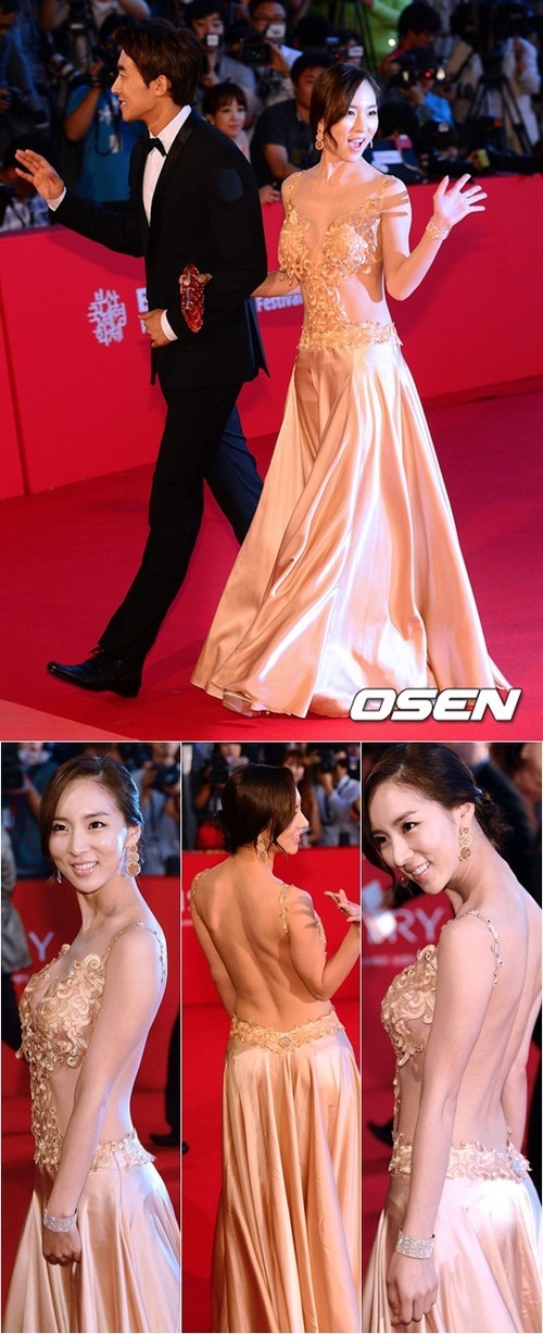 신인 여배우 배소은이 4일 오후 부산 영화의 전당에서 열리는 제17회 부산국제영화제(BIFF) 개막식 레드카펫 행사에서 누드톤의 파격드레스를 입고 레드카펫에 올라 화제다.
