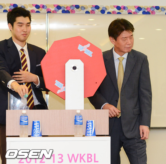5일 오전 서울 강서구 등촌동 WKBL 빌딩 2층 교육실에서 열린 2012-13 WKBL 외국인 선수 드래프트에서 KB스타즈 정덕화 감독이 마지막 순위를 뽑고 고개를 떨구고 있다.