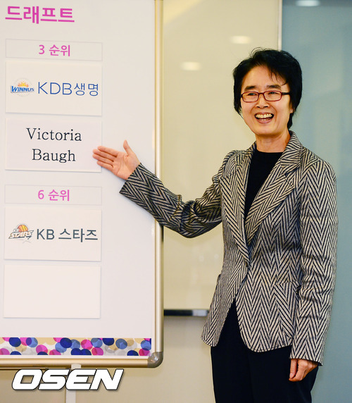 5일 오전 서울 강서구 등촌동 WKBL 빌딩 2층 교육실에서 열린 2012-13 WKBL 외국인 선수 드래프트에서 KDB생명 이옥자 감독이 빅토리아 바흐를 지명학 있다.