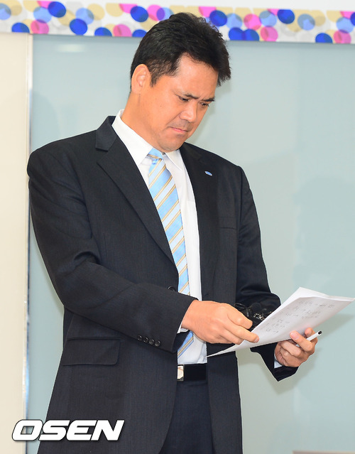 5일 오전 서울 강서구 등촌동 WKBL 빌딩 2층 교육실에서 열린 2012-13 WKBL 외국인 선수 드래프트에서 삼성생명 이호근 감독이 앞으로 나와서 자신이 지명한 외국인 선수 이름을 오랫동안 바라보고 있다.