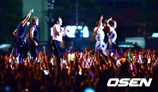 '강남스타일'로 세계적인 인기를 누리고 있는 싸이의 무료공연이 4일 오후 시청 앞 광장에서 열려 싸이가 멋진 무대를 선보이고 있다.
