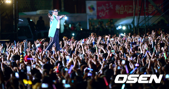 '강남스타일'로 세계적인 인기를 누리고 있는 싸이의 무료공연이 4일 오후 시청 앞 광장에서 열려 싸이가 멋진 무대를 선보이고 있다.