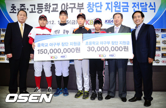 이날 행사에는 각 교의 교장, 야구부장, 감독, 주장, 학부모 대표가 참석하며 KBO 구본능 총재와 KBA 강승규 회장에게 지원금을 전달받았다. / youngrae@osen.co.kr