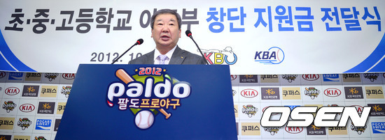 한국야구위원회(KBO) 구본능 총재가 초등학교와 중학교 야구팀 창단지원금 전달의 의의를 전했다.