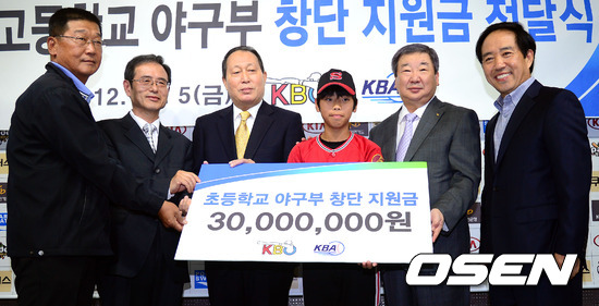이날 행사에는 각 교의 교장, 야구부장, 감독, 주장, 학부모 대표가 참석하며 KBO 구본능 총재와 KBA 강승규 회장, 김인식 초중고교 창단추진위원회 위원장에게 지원금을 전달받았다. / youngrae@osen.co.kr