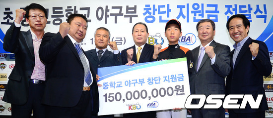 이날 행사에는 각 교의 교장, 야구부장, 감독, 주장, 학부모 대표가 참석하며 KBO 구본능 총재와 KBA 강승규 회장, 김인식 초중고교 창단추진위원회 위원장에게 지원금을 전달받았다. / youngrae@osen.co.kr