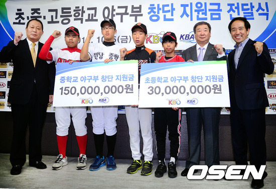 이날 행사에는 각 교의 교장, 야구부장, 감독, 주장, 학부모 대표가 참석하며 KBO 구본능 총재와 KBA 강승규 회장, 김인식 초중고교 창단추진위원회 위원장에게 지원금을 전달받았다. / youngrae@osen.co.kr