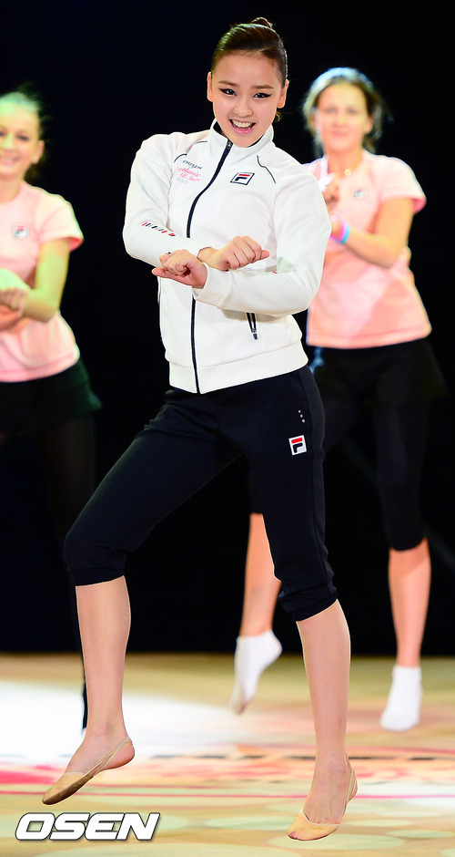 5일 오후 일산 킨텍스 신관 특설무대에서 열린 ‘LG휘센 리드믹올스타즈 2012’ 공개 리허설에서 손연재가 말춤을 추고 있다.