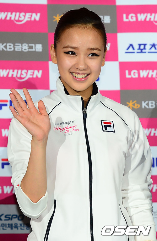 5일 오후 일산 킨텍스 신관 특설무대에서 열린 ‘LG휘센 리드믹올스타즈 2012’ 공개 리허설에서 손연재가 포토타임을 갖고 있다.
