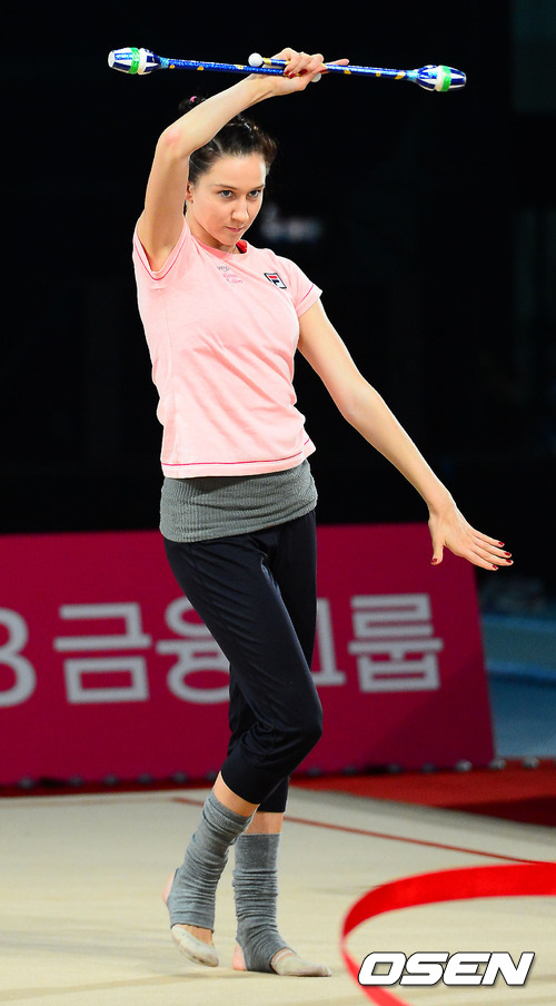5일 오후 일산 킨텍스 신관 특설무대에서 열린 ‘LG휘센 리드믹올스타즈 2012’ 공개 리허설에서 차카시나가 곤봉연습을 하고 있다.