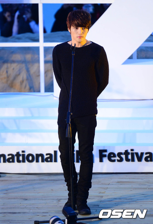 5일 오후 부산 해운대 '비프빌리지' 야외무대에서 열린 영화 무대인사 행사에서 김재중이 팬들과의 시간을 갖고 있다.