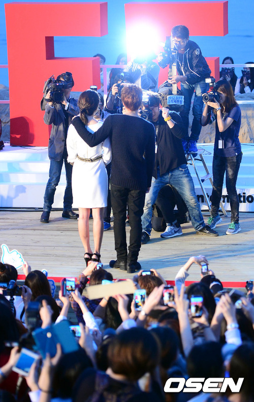 5일 오후 부산 해운대 '비프빌리지' 야외무대에서 열린 영화 무대인사 행사에서 송지효 김재중이 포토타임을 갖고 있다.