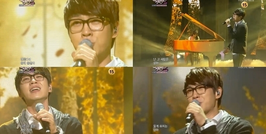 이석훈은 5일 오후 방송된 KBS 2TV ‘뮤직뱅크’를 통해 신곡 ‘좋으니까’의 컴백 무대를 가졌다. 회색 스카프와 카디건을 매치한 의상으로 분위기를 낸 그는 한층 부드러워진 음색으로 무대를 가득 채웠다.