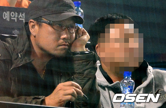 5일 오후 서울 잠실구장에서 열린 '2012 팔도 프로야구' 두산 베어스와 넥센 히어로즈의 경기, SK 김상진 코치가 포스트시즌 두산 전력탐색을 하기 위해 경기장을 찾아 경기를 지켜보고 있다.
