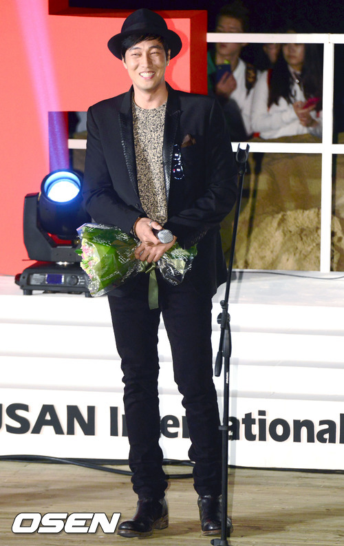 5일 오후 부산 해운대 '비프빌리지' 야외무대에서 열린 영화 무대인사 행사에서 소지섭이 미소짓고 있다.